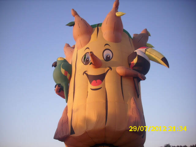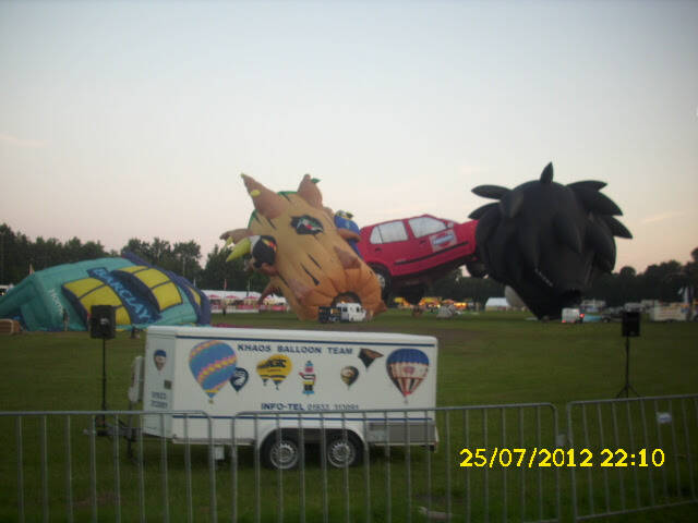 Dag 5: 29 juli 2012: Overdag waaide het veel te hard, in de avond was de wind voldoende afgenomen. Alle ballonnen gingen de lucht in. Onder hen veel Special shapes, waarpnder de Aston Martin (G-OAML) en de Nissan Micra (PH-HOS). Woodrow (N-908KS) werd voor het publiek rechtop gezet.