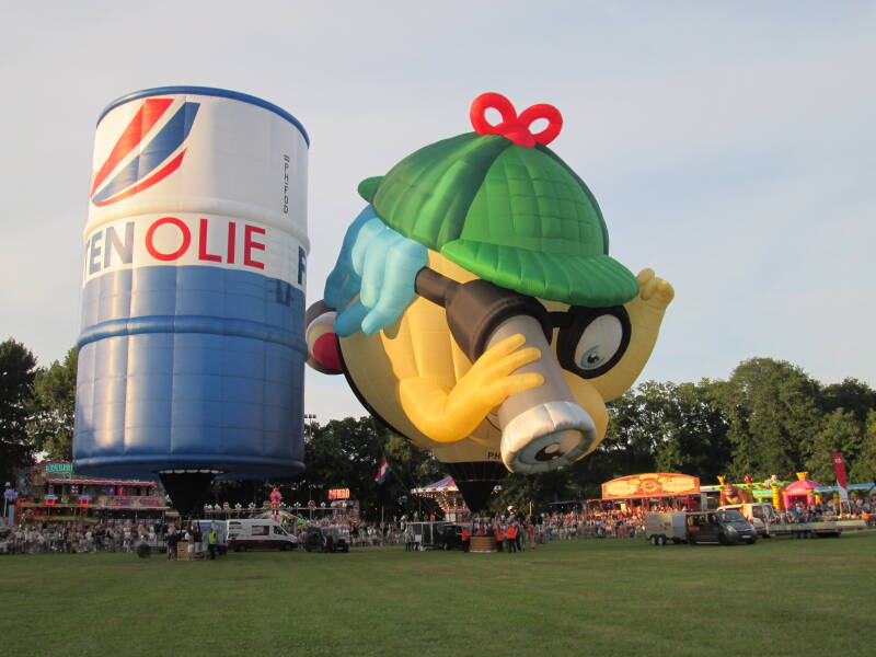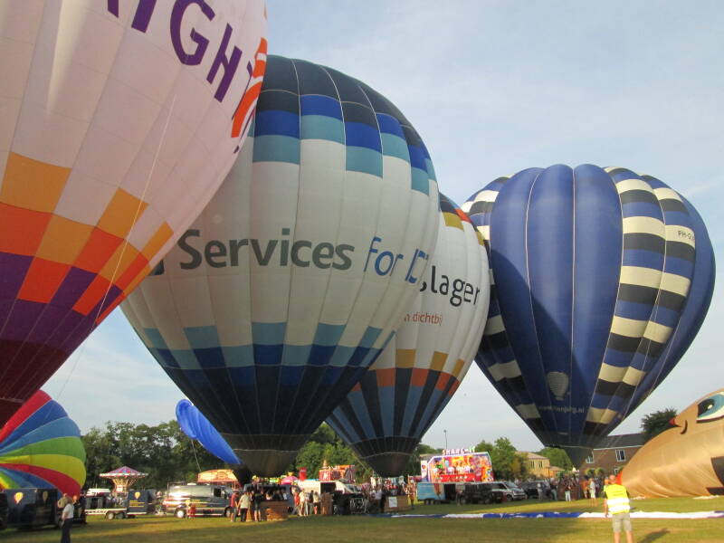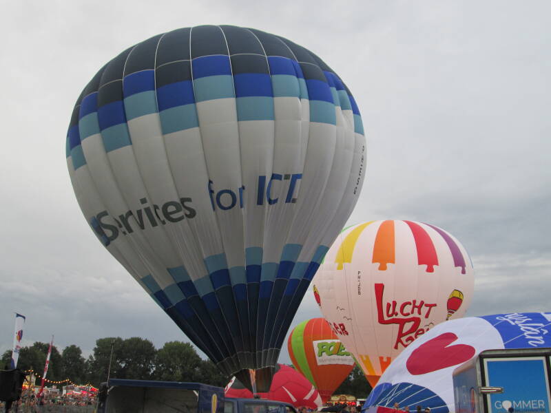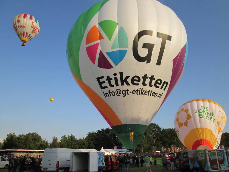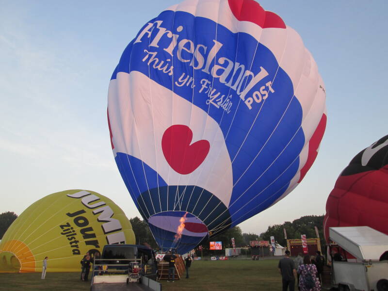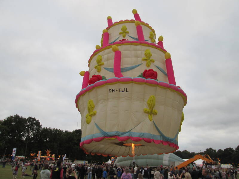 Dag 3: 18 juli 2025, Avondvaart: Tijdens de derde avond konden de omstandigheden eigenlijk niet mooier. Er was een stralend zonnetje en er stond amper wind. De luchtballonnen bleven nog lang in zicht en landden allemaal in de omgeving van Joure. Op deze avond steeg Mr. Globie (PH-GLO) op en gaven de taart (PH-TJL), de locomotief (G-LOKO) en het paard (OO-BQH) een demonstratie.