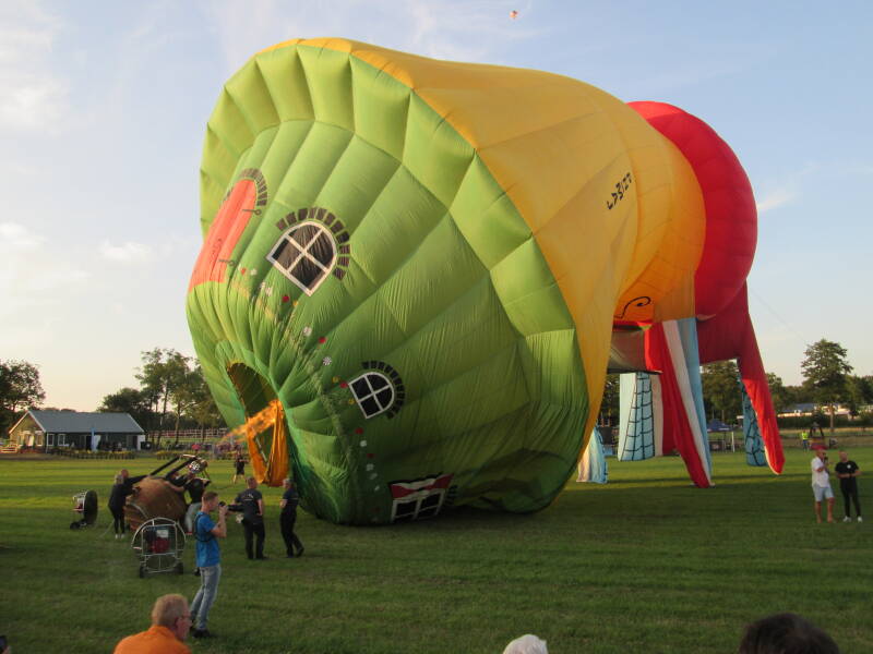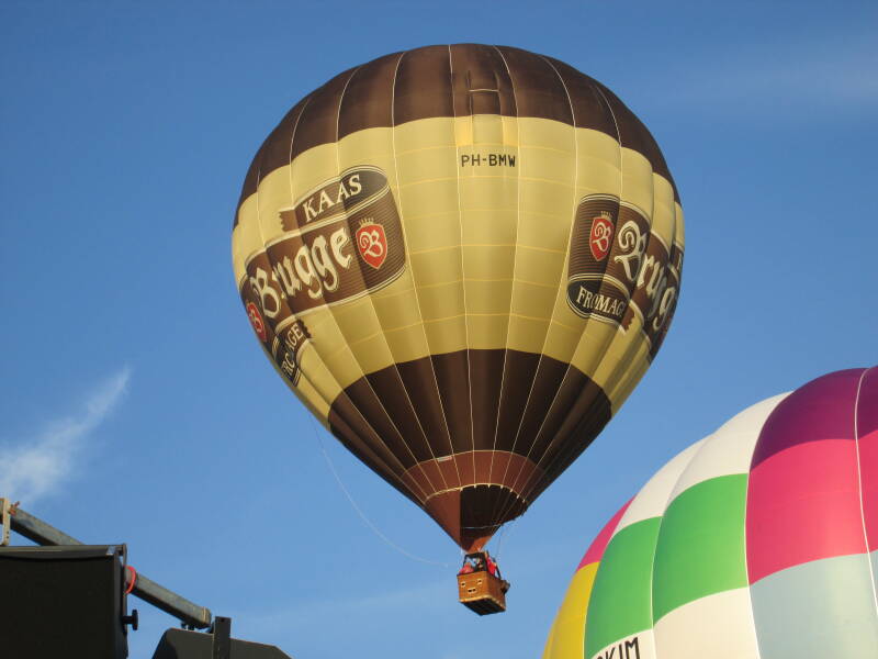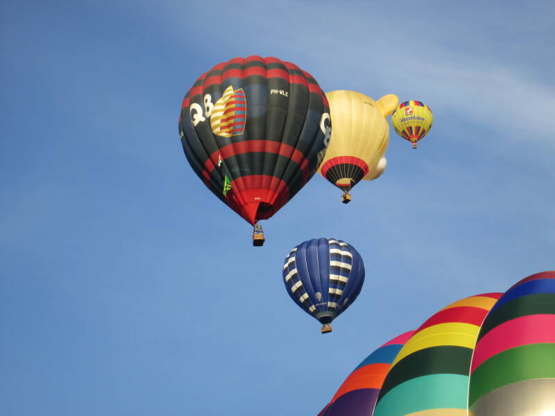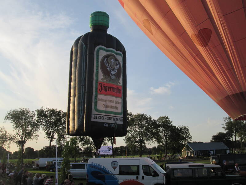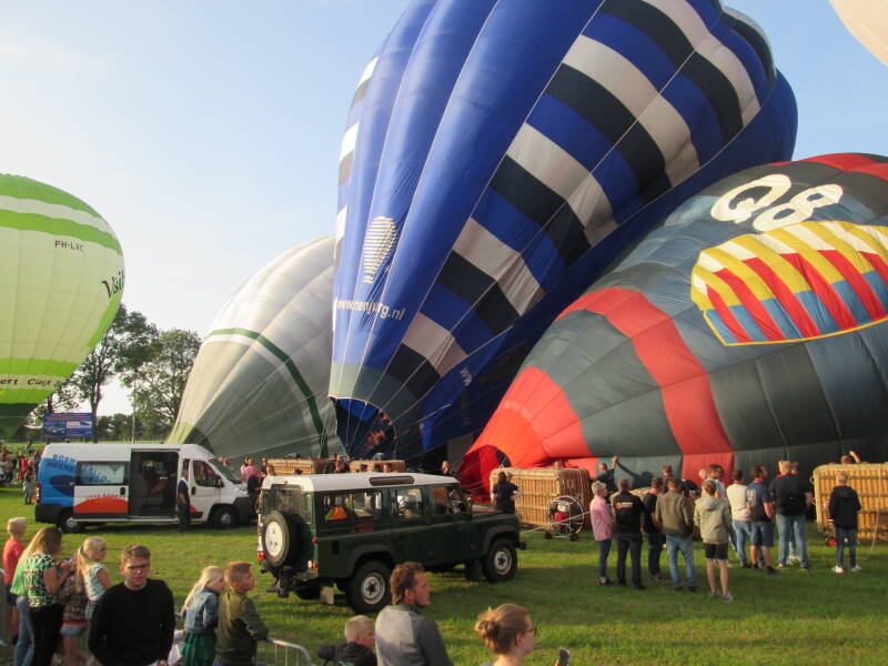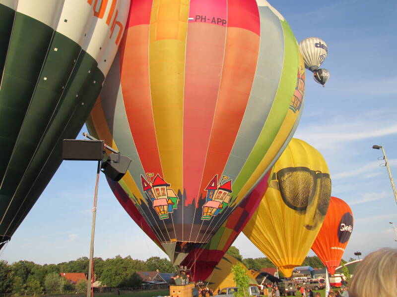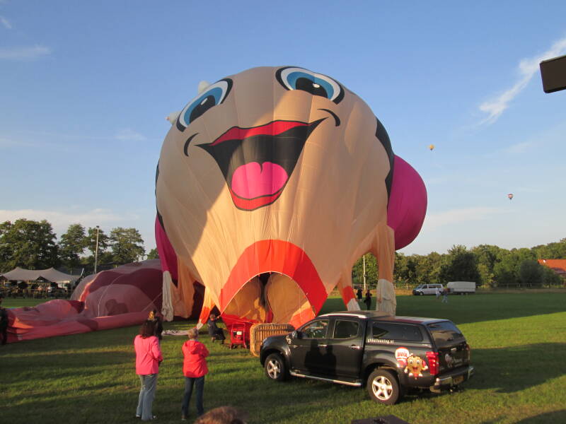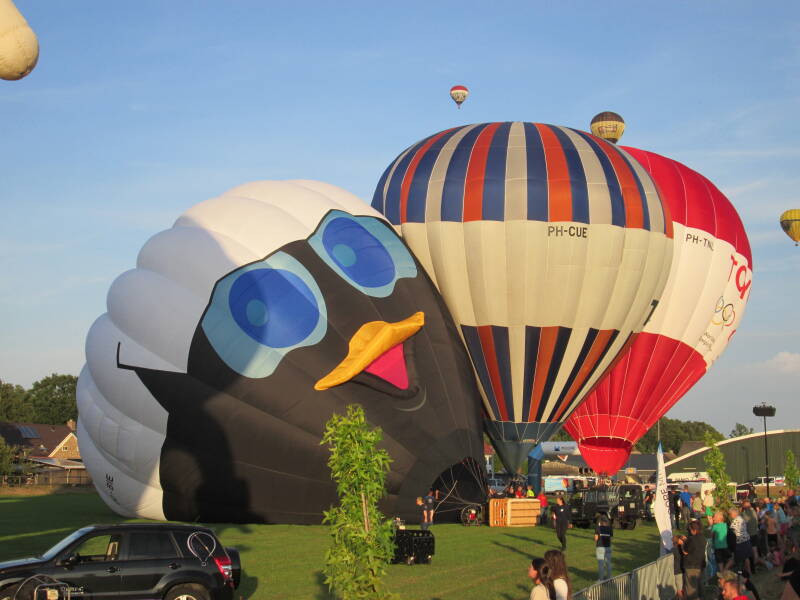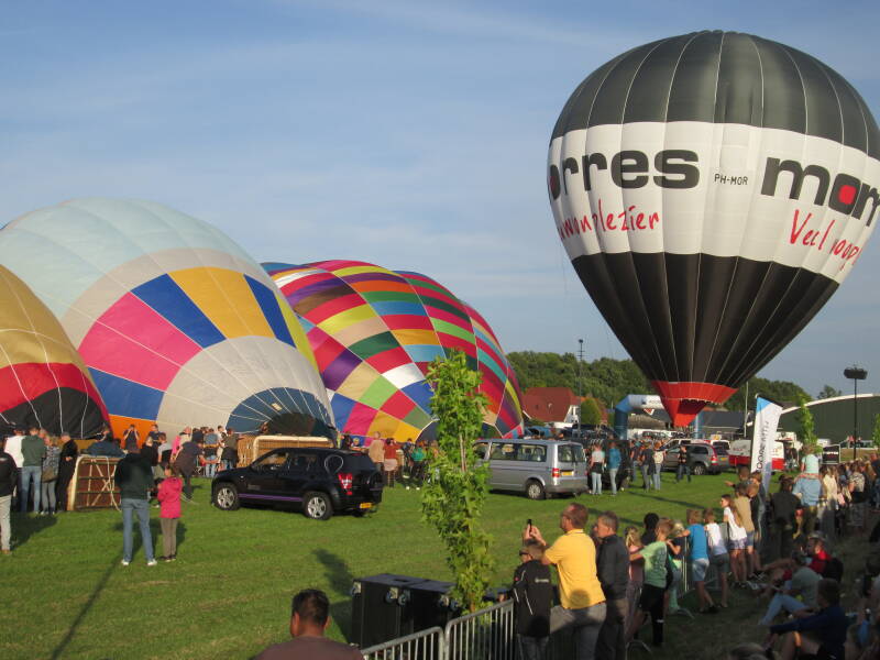 Onder die ballonnen ook enkele Special Shapes, zoals Babette (PH-BAB), Calimero (OO-BIE), de Jägermeister fles (OK-1878) en de molen (PH-MAJ). De collectebus (PH-WBD) werd nog opgezet voor het publiek.
