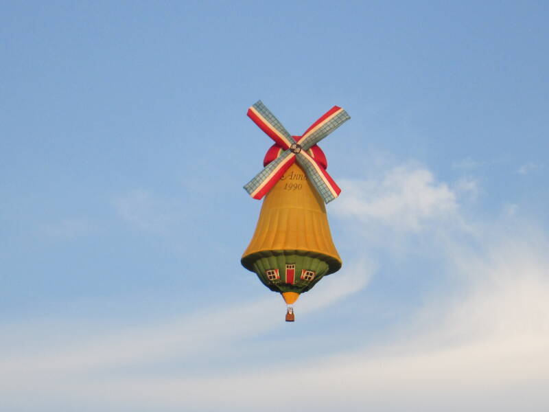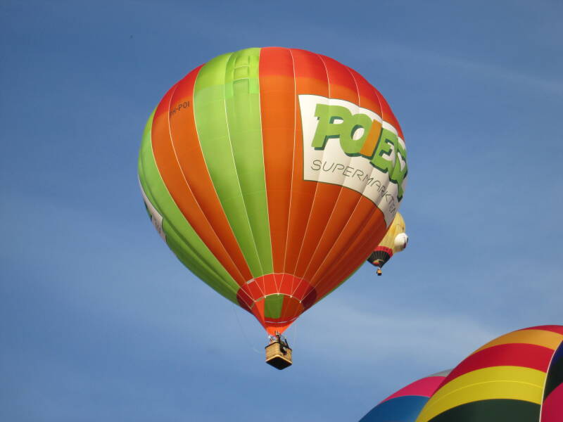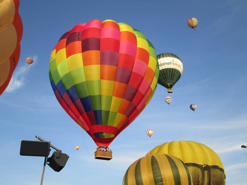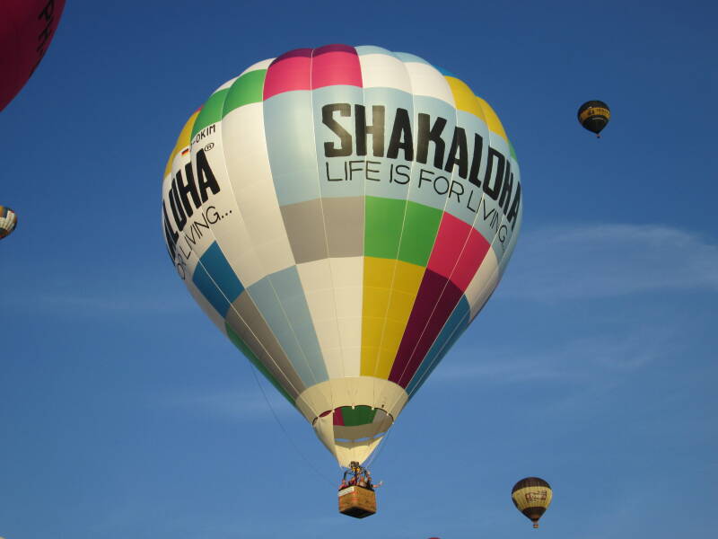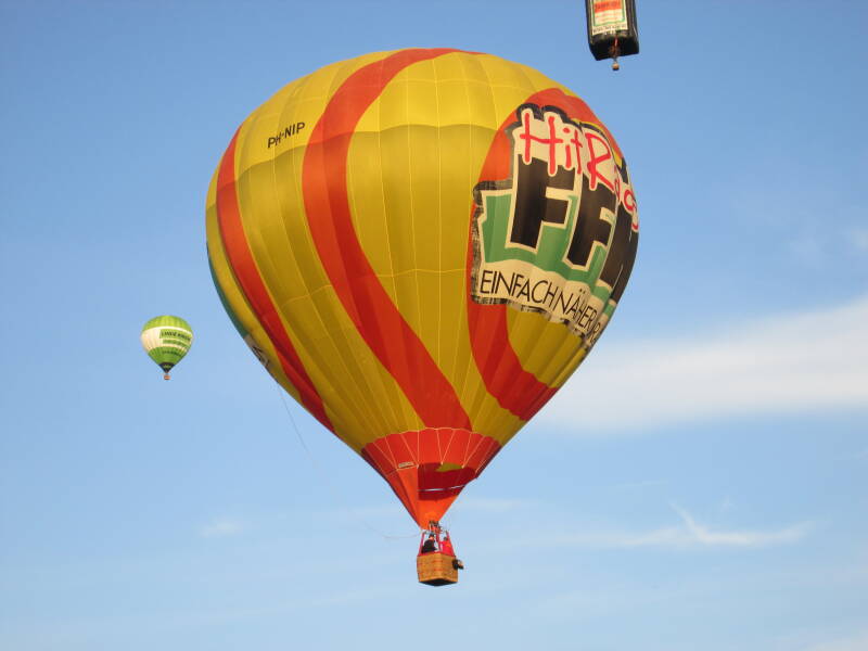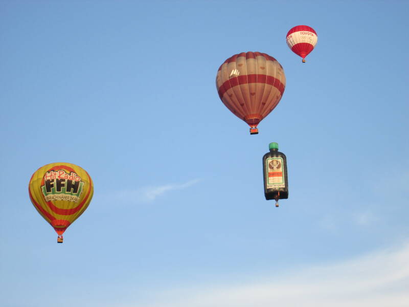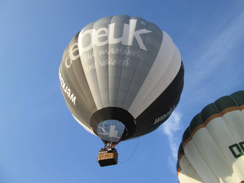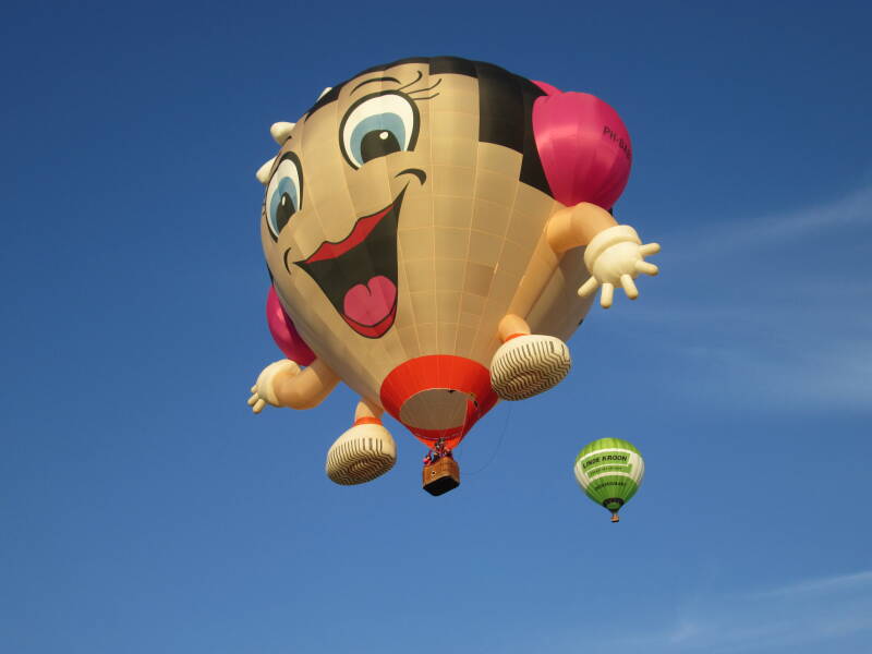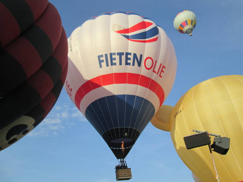 Onder die ballonnen ook enkele Special Shapes, zoals Babette (PH-BAB), Calimero (OO-BIE), de Jägermeister fles (OK-1878) en de molen (PH-MAJ). De collectebus (PH-WBD) werd nog opgezet voor het publiek.