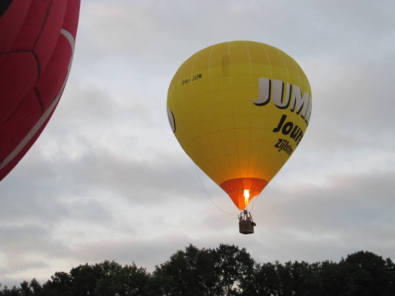Ballonfeestenvoorzitter Erwin Bethlehem aan het roer van de PH-JUM.
