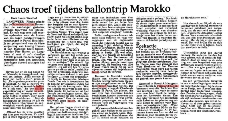 Memorabel was een tripje naar Marokko in 1990. De ballon was uitgenodigd om een ballonvaart te maken tijdens de 61e verjaardag van koning Hassan II. De trip liep echter uit op totale chaos: van een ballon besmeurd met olie tot een gestolen aanhangwagen. Voor het gehele verhaal verwijs ik je graag door naar onderstaand artikel.