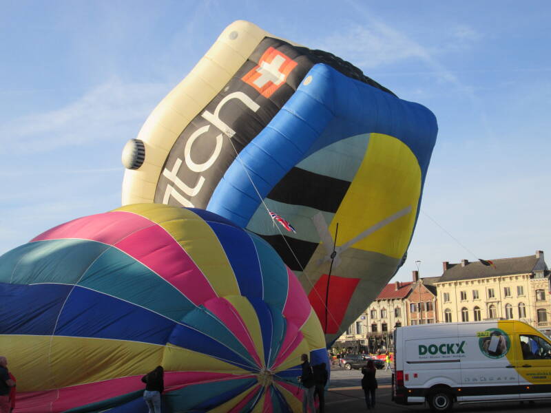 De stadsballon van Sint-Niklaas (OO-BSW) deze ochtend als eerste.