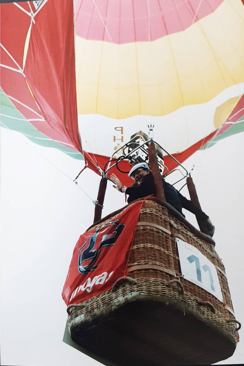 “Ik werkte in die tijd bij de Ford-garage in Heerenveen”, vertelt hij. “Ik trof een vertegenwoordiger van Landi den Hartog, een producent van autogassystemen. Ik vroeg of het bedrijf het WK solexracen wilde sponsoren.” Het kwam rond, op één voorwaarde. “Zij wilden na afloop opstijgen met hun nieuwe luchtballon. Wij hadden eigenlijk geen idee wat een luchtballon was, maar wij vonden het wel prima, het was ons om de sponsoring te doen.”