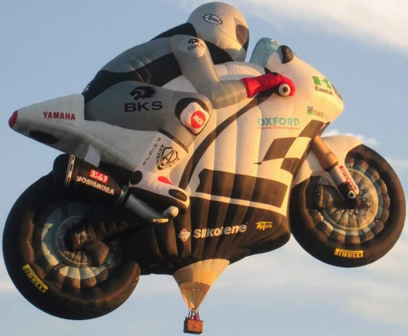 Natuurlijk mag Europa's grootste Special Shape, de Superbike, niet ontbreken bij de Friese Ballonfeesten. De ballon uit de stal van Herman Kleinsmit zal tijdens de Ballonfeesten bevaren worden door Jan Haven.
