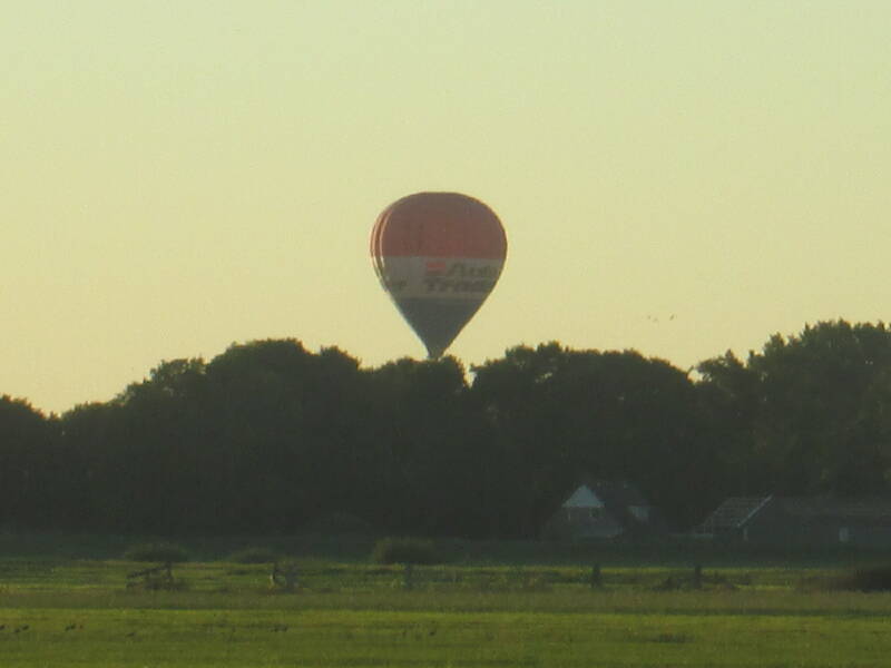 Helaas was de wind voor veel ballonvaarders reden om deze avond niet te gaan. Toch zag ik er eentje in de lucht, de PH-ATN. Volgens mij is die ballon ver achter Joure opgestegen en de koers leek aanvankelijk precies richting ons huis te gaan. Helaas stond de wind in sommige luchtlagen meer richting het noorden, waardoor ik hem uiteindelijk toch niet goed voor mijn lens kon krijgen. Volgende keer beter.