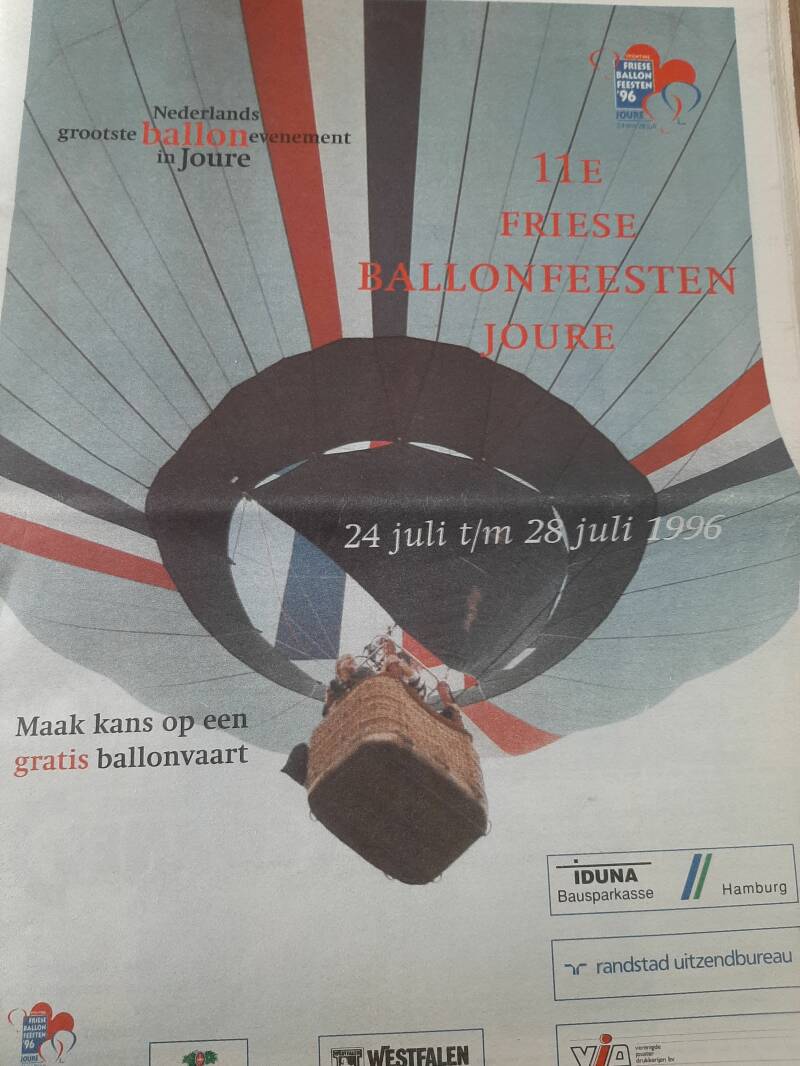 1996, het eerste jaar van de nieuw opgerichte Stichting de Friese Ballonfeesten. Zij hebben Vriendenclub de Vlecke na 10 jaar afgelost. Het festival werd iets minder commercieel opgezet en er kwamen meer lokale piloten.