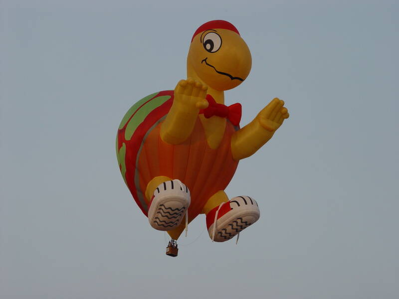 Een andere in het oog springende luchtballon is de vos met een brilletje op. Eigenaar Rudolf Höfer stuurde piloot Warner Schmidt met deze ballon naar Joure.