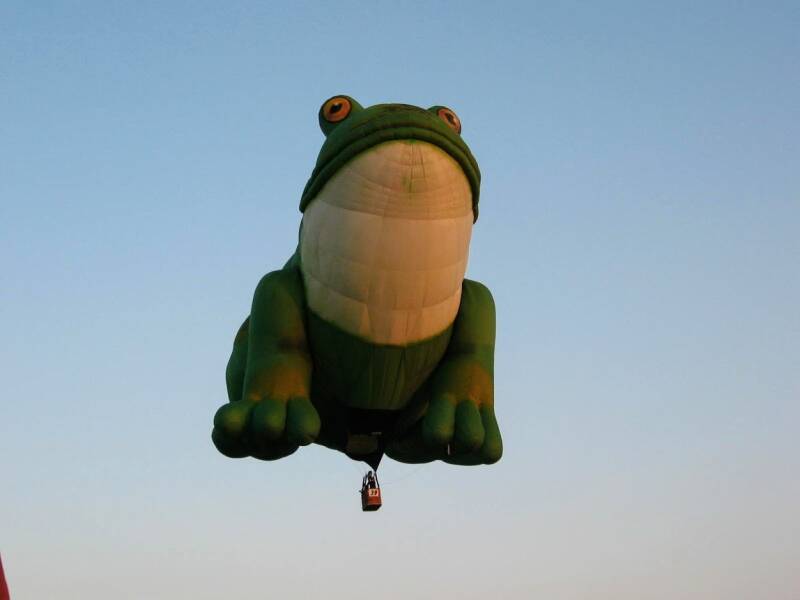 De kikker is verkozen tot de mooiste ballon op de Friese Ballonfeesten van 1997. Het groene gevaarte bleef de buldog (G-USMC) en de Upside down (PH-OHI) voor.