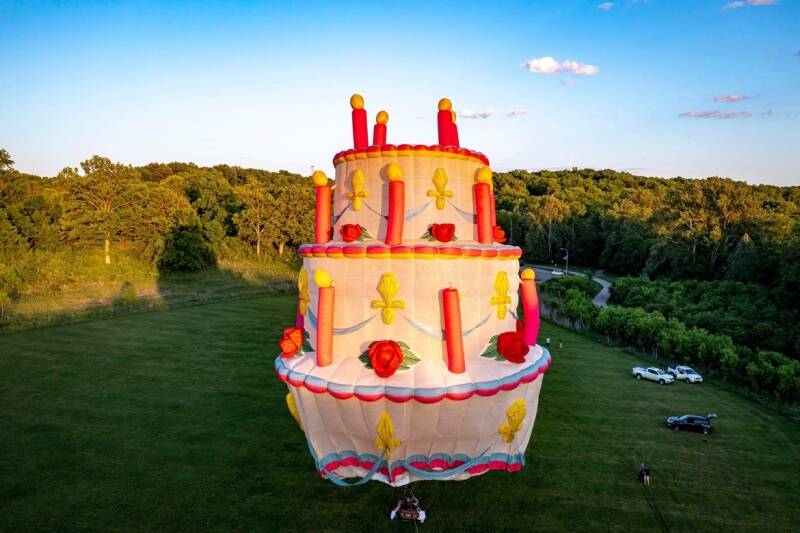 Dit jaar is het 35-jarig jubileum van de Friese Ballonfeesten. Om die heugelijke gebeurtenis te vieren, komt de taart naar Joure. In 2008 was deze ballon ook al eens van de partij. Zijn voorganger, de G-WISH, was in 1995 bij de Ballonfeesten.