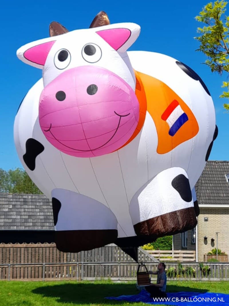 Onder de modelballonnen zitten ook enkele Special Shapes. Naast de koe (zie de foto hiernaast) zijn dat onder andere twee honden, een saxofoon en Calimero.