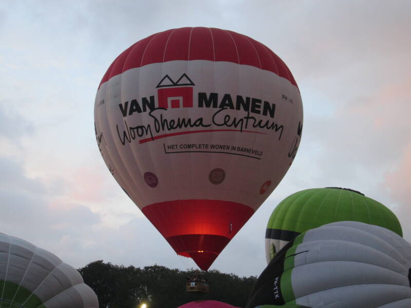 Het weer zag er vrijdagavond niet goed uit. Steeds trokken er buien over het midden van Nederland en dus leek het niet goed te komen met het Ballonfiësta in Barneveld.